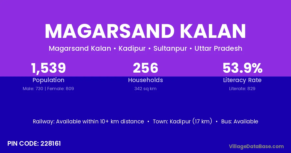 Kadipur (17 km) is the nearest town to Magarsand Kalan village for major economic activities and is located approximately 17 km away.