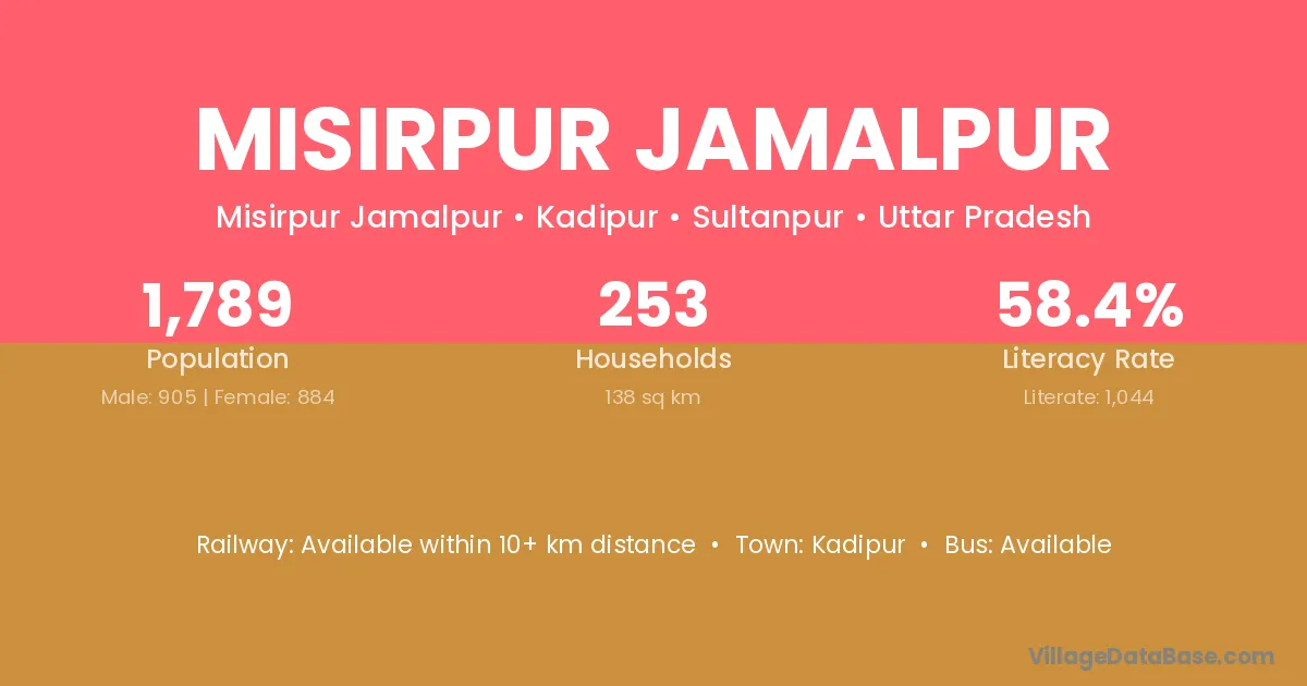 Misirpur Jamalpur village has a total population of 1,789 people, of which 905 are males and 884 are females.