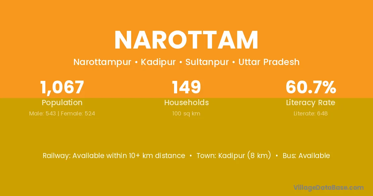Kadipur (8 km) is the nearest town to Narottam village for major economic activities and is located approximately 8 km away.