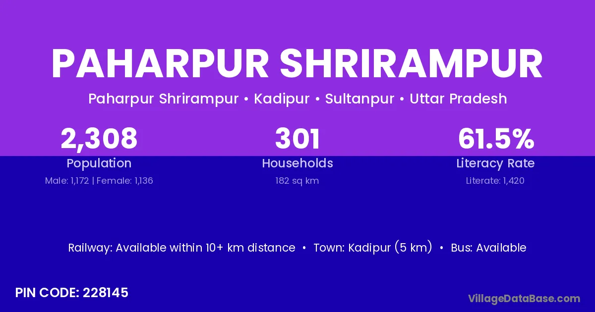 Kadipur (5 km) is the nearest town to Paharpur Shrirampur village for major economic activities and is located approximately 5 km away.