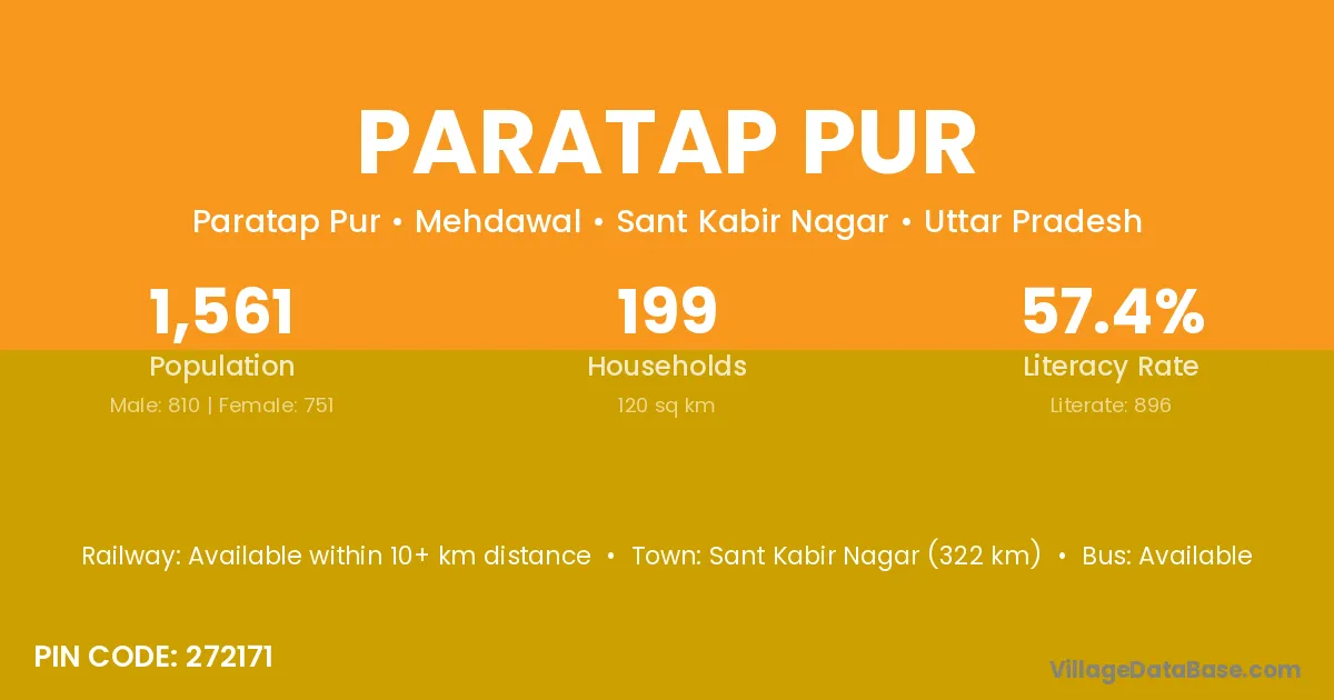 Dostpur (3 km) is the nearest town to Paratap Pur village for major economic activities and is located approximately 3 km away.