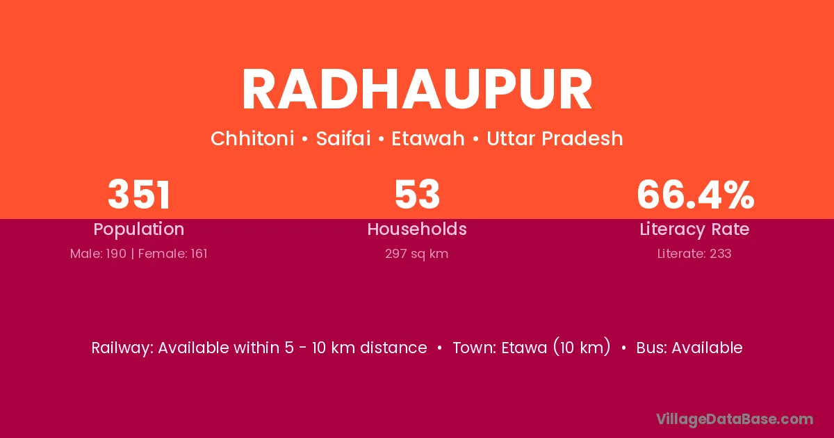 Radhaupur village has a total population of 1,010 people, of which 521 are males and 489 are females.
