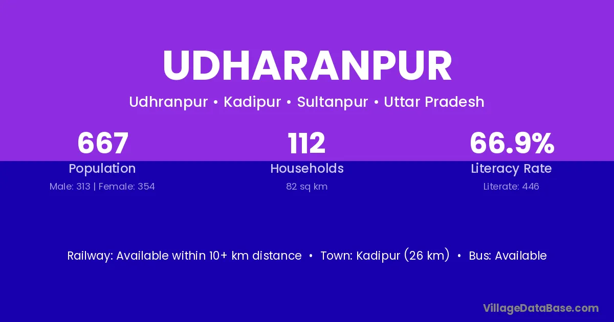 Kadipur (26 km) is the nearest town to Udharanpur village for major economic activities and is located approximately 26 km away.