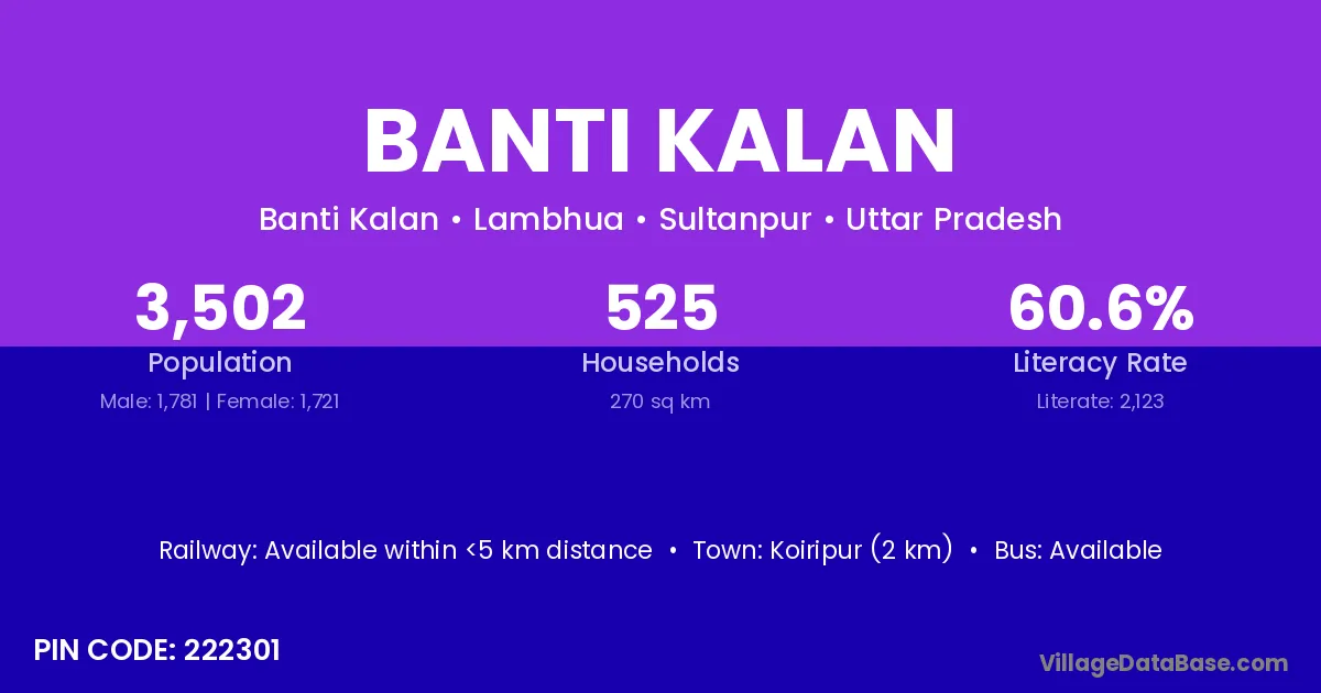 Koiripur (2 km) is the nearest town to Banti Kalan village for major economic activities and is located approximately 2 km away.