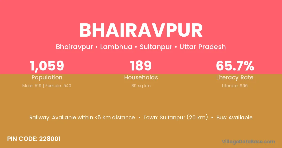 Sultanpur (20 km) is the nearest town to Bhairavpur village for major economic activities and is located approximately 20 km away.