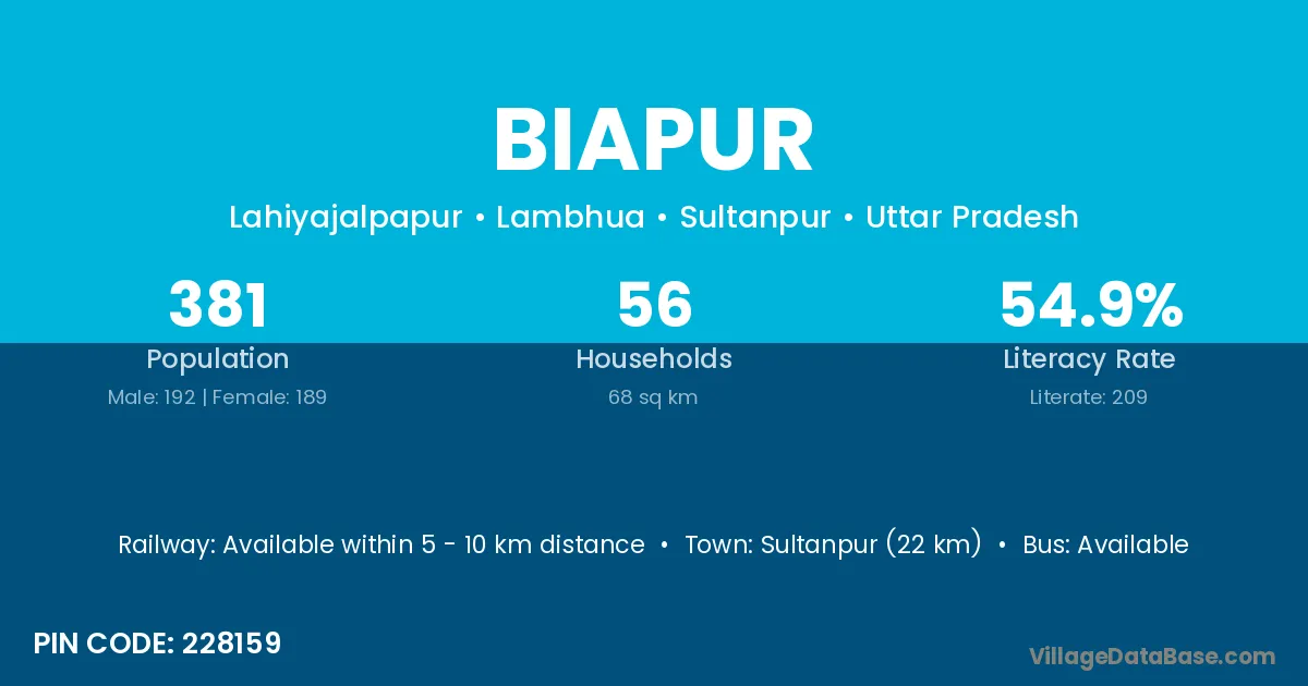 Sultanpur (22 km) is the nearest town to Biapur village for major economic activities and is located approximately 22 km away.