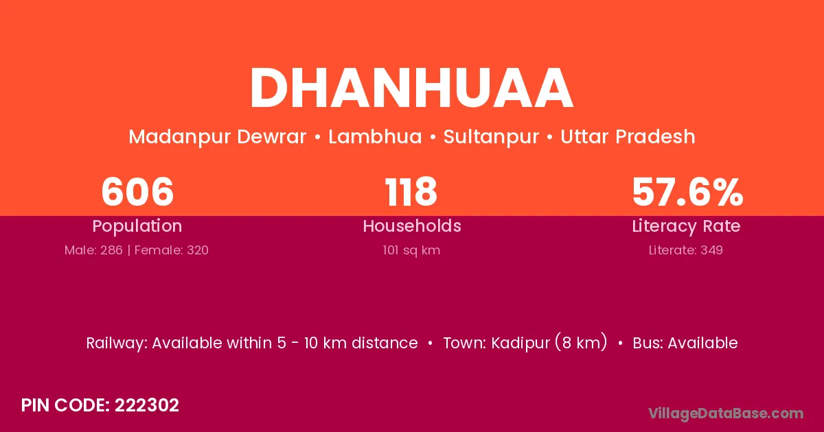 Kadipur (8 km) is the nearest town to Dhanhuaa village for major economic activities and is located approximately 8 km away.