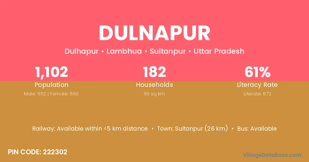 Sultanpur (26 km) is the nearest town to Dulnapur village for major economic activities and is located approximately 26 km away.