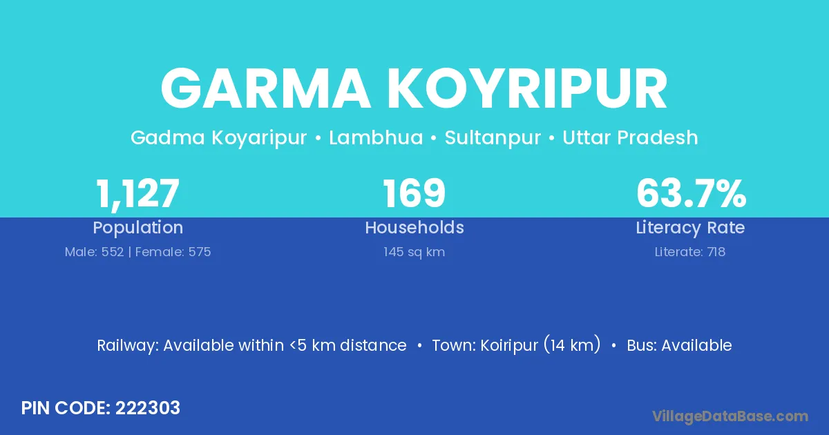 Garma Koyripur village has a total population of 1,127 people, of which 552 are males and 575 are females.