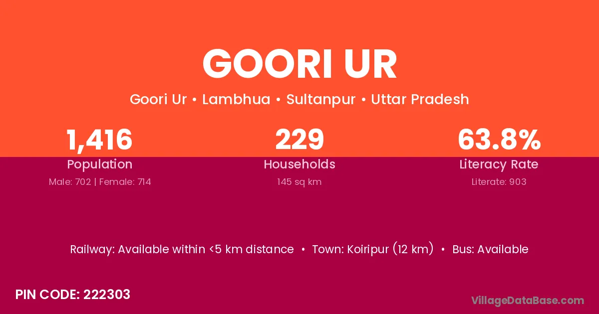Goori Ur village has a total population of 1,416 people, of which 702 are males and 714 are females.