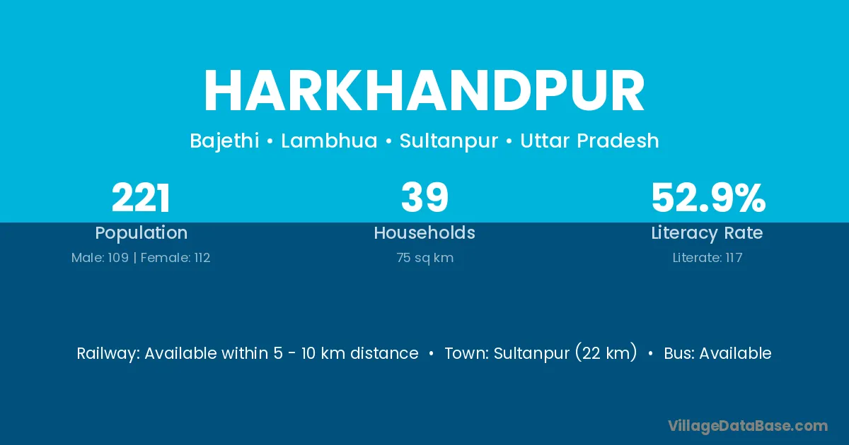Sultanpur (22 km) is the nearest town to Harkhandpur village for major economic activities and is located approximately 22 km away.
