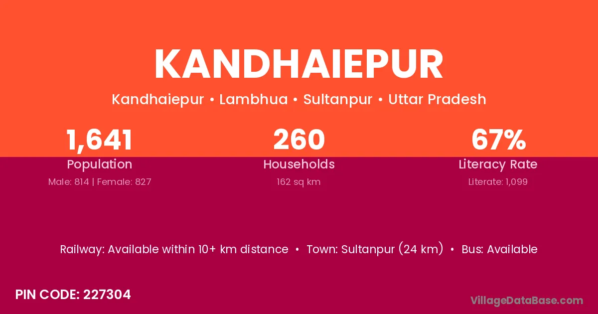 Sultanpur (24 km) is the nearest town to Kandhaiepur village for major economic activities and is located approximately 24 km away.