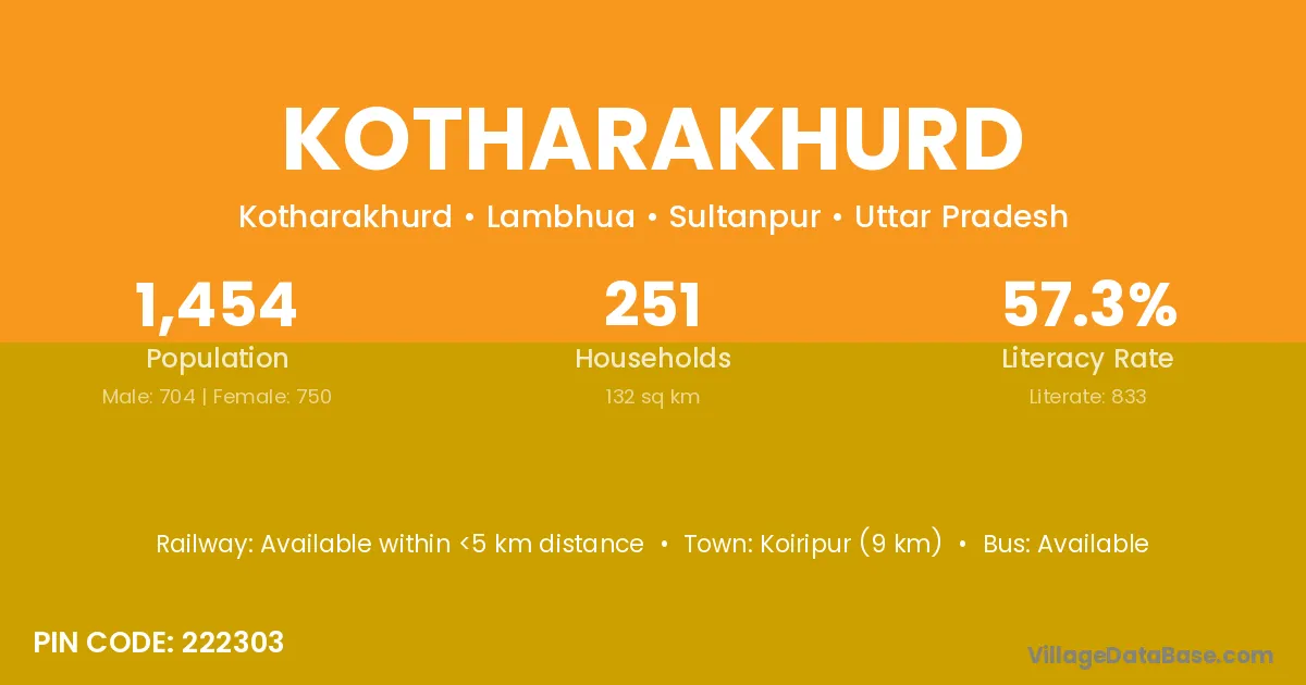 Kotharakhurd village has a total population of 1,454 people, of which 704 are males and 750 are females.