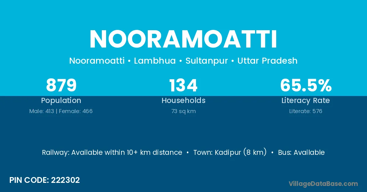 Kadipur (8 km) is the nearest town to Nooramoatti village for major economic activities and is located approximately 8 km away.