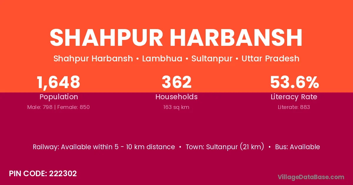 Sultanpur (21 km) is the nearest town to Shahpur Harbansh village for major economic activities and is located approximately 21 km away.