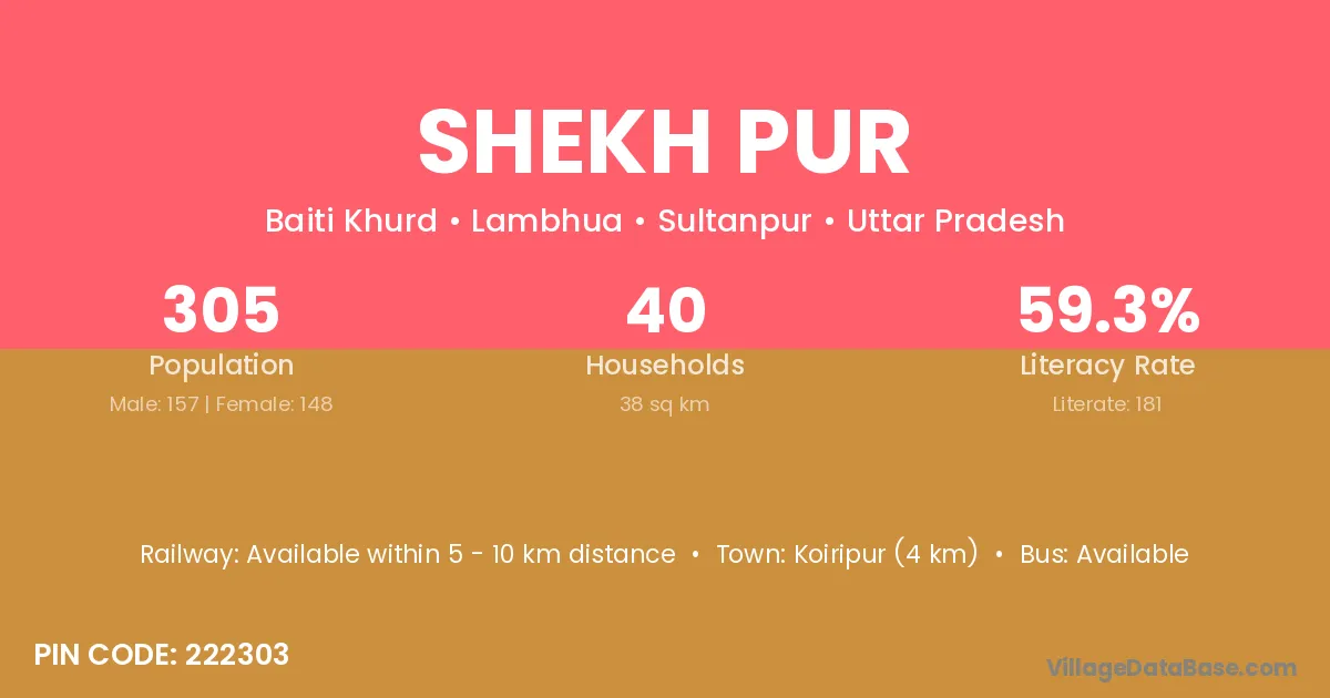 Koiripur (4 km) is the nearest town to Shekh Pur village for major economic activities and is located approximately 4 km away.