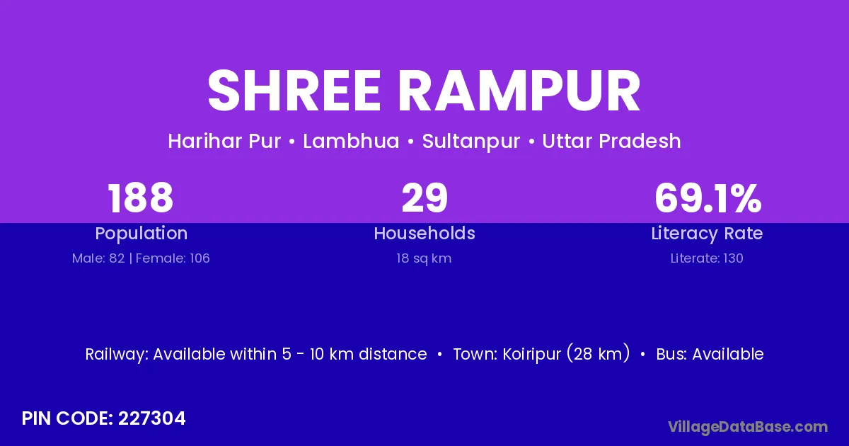 Koiripur (28 km) is the nearest town to Shree Rampur village for major economic activities and is located approximately 28 km away.