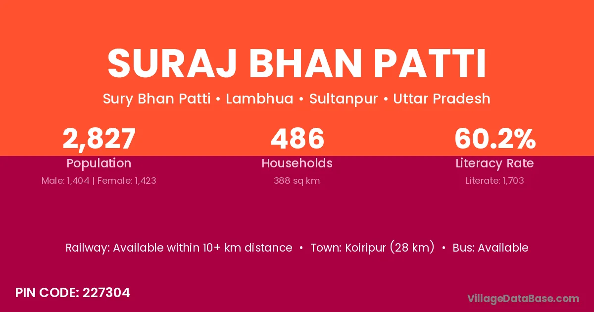 Koiripur (28 km) is the nearest town to Suraj Bhan Patti village for major economic activities and is located approximately 28 km away.