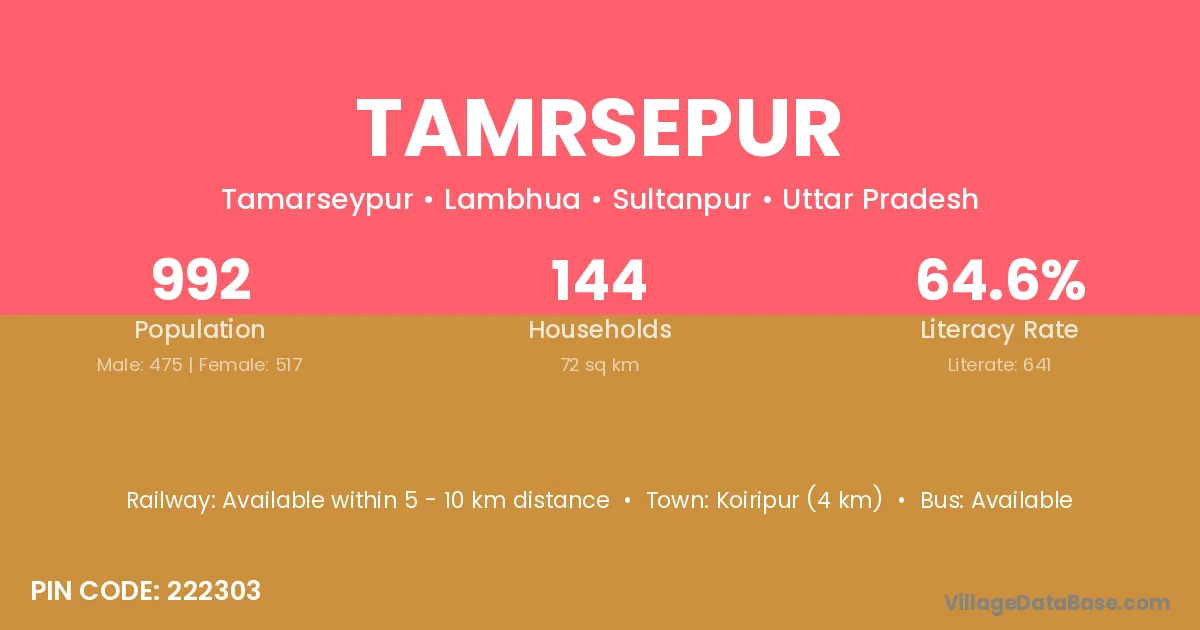 Tamrsepur village has a total population of 992 people, of which 475 are males and 517 are females.
