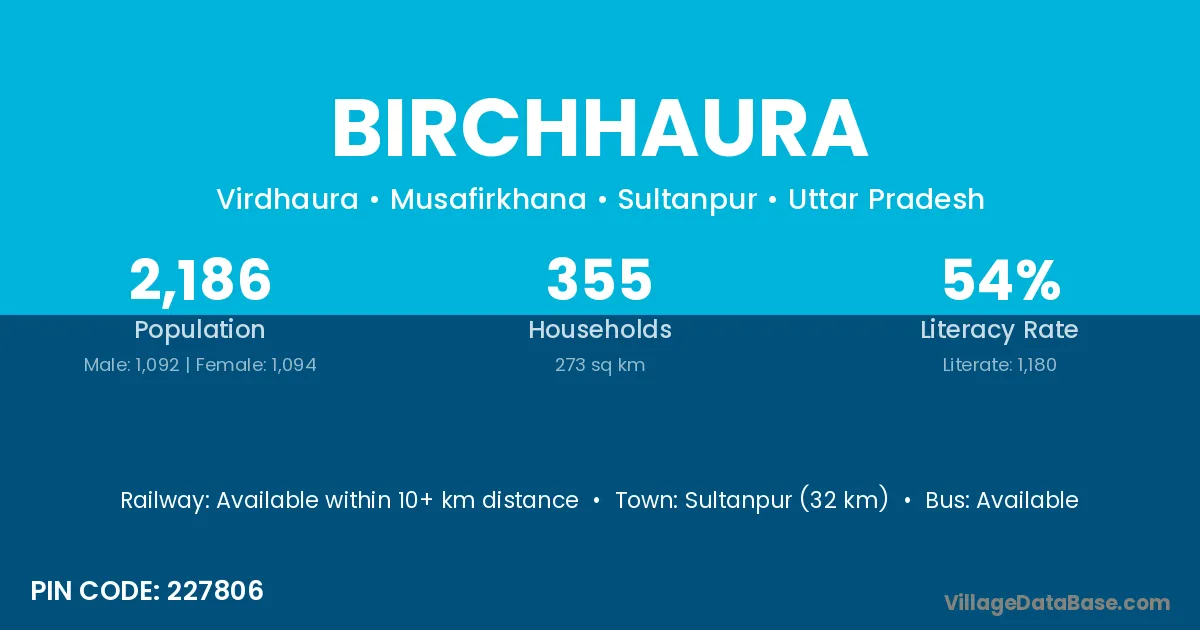 Sultanpur (32 km) is the nearest town to Birchhaura village for major economic activities and is located approximately 32 km away.