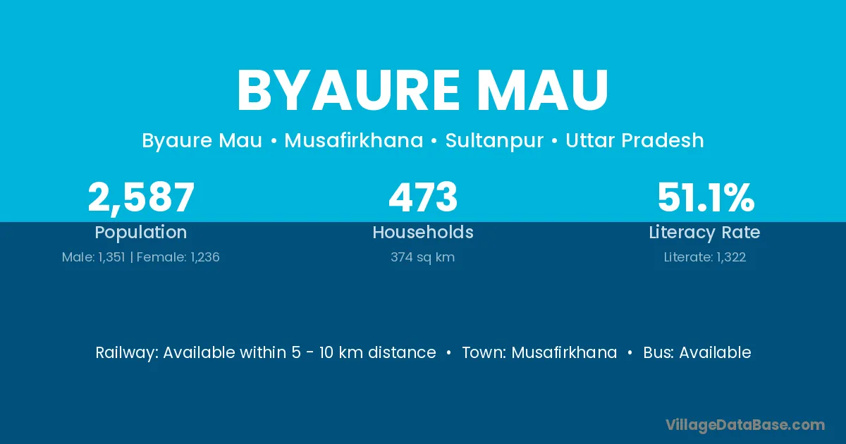 Byaure Mau village has a total population of 2,587 people, of which 1,351 are males and 1,236 are females.
