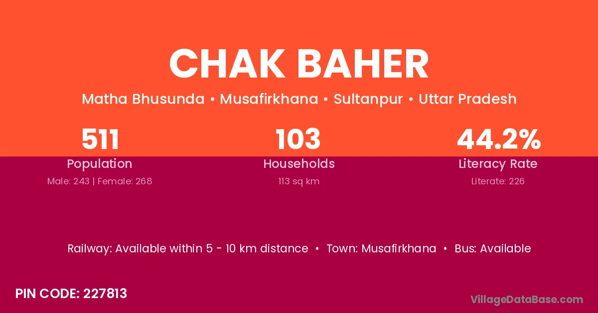 Musafirkhana is the nearest town to Chak Baher village for major economic activities