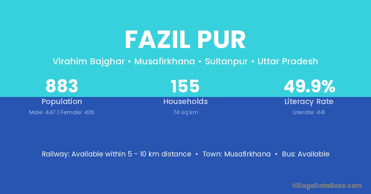 Fazil Pur village has a total population of 883 people, of which 447 are males and 436 are females.