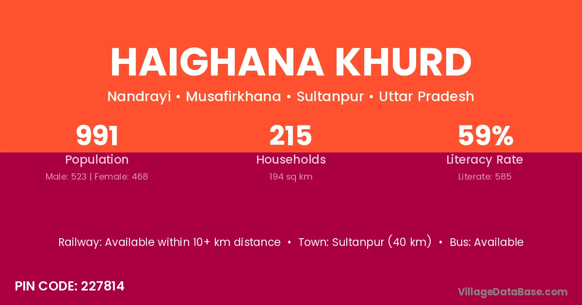 Sultanpur (40 km) is the nearest town to Haighana Khurd village for major economic activities and is located approximately 40 km away.