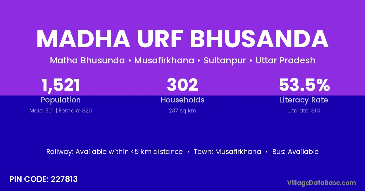 Musafirkhana is the nearest town to Madha Urf Bhusanda village for major economic activities