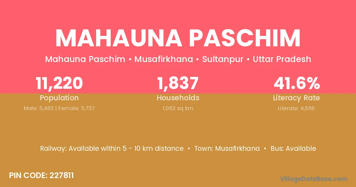 Mahauna Paschim village has a total population of 11,220 people, of which 5,483 are males and 5,737 are females.