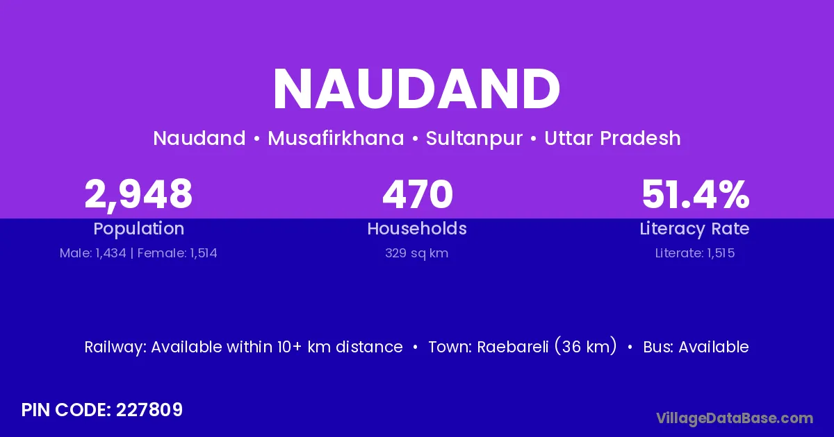 Raebareli (36 km) is the nearest town to Naudand village for major economic activities and is located approximately 36 km away.