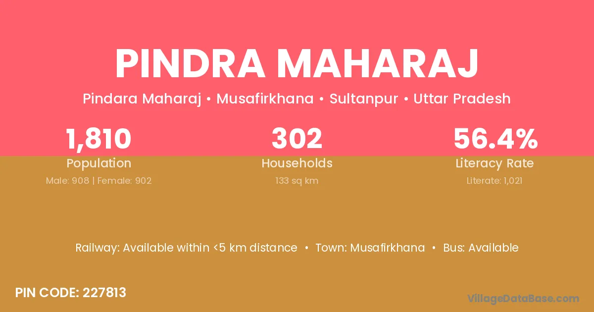 Pindra Maharaj village has a total population of 1,810 people, of which 908 are males and 902 are females.