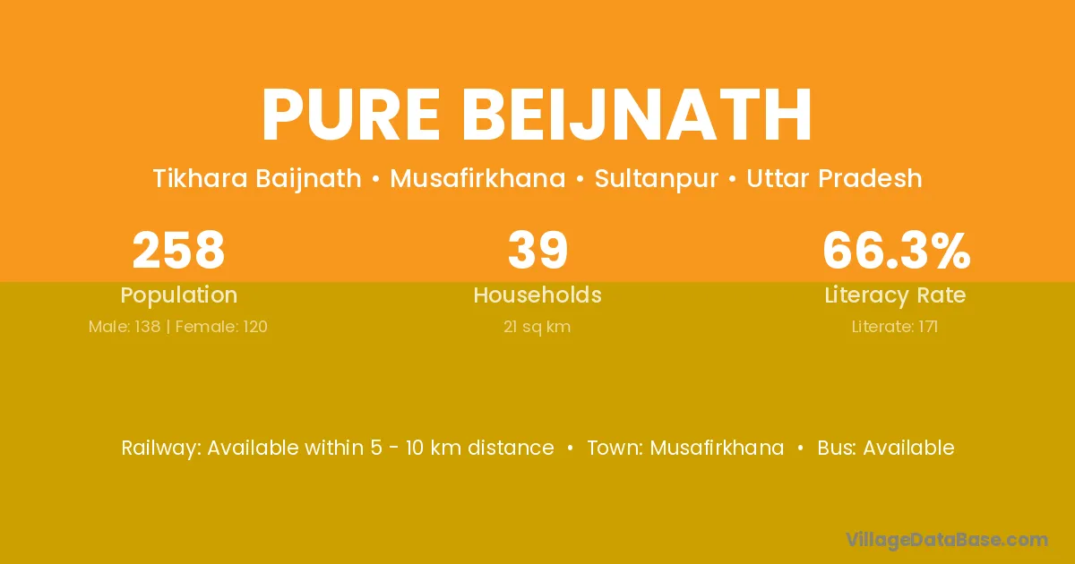 Pure Beijnath village has a total population of 258 people, of which 138 are males and 120 are females.