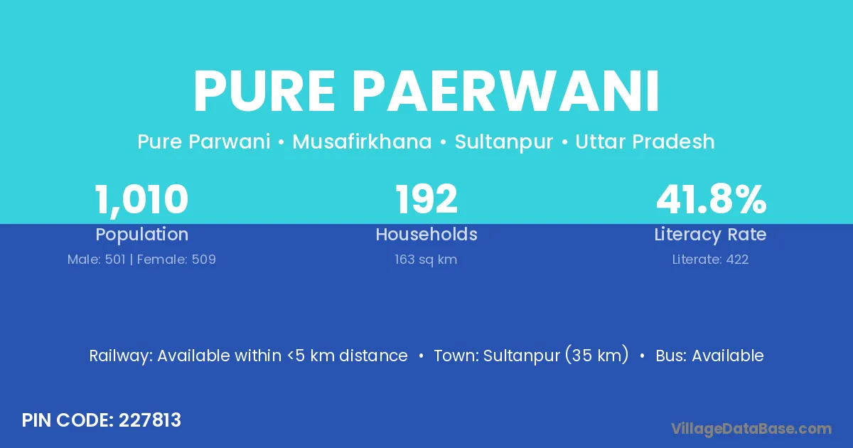 Sultanpur (35 km) is the nearest town to Pure Paerwani village for major economic activities and is located approximately 35 km away.