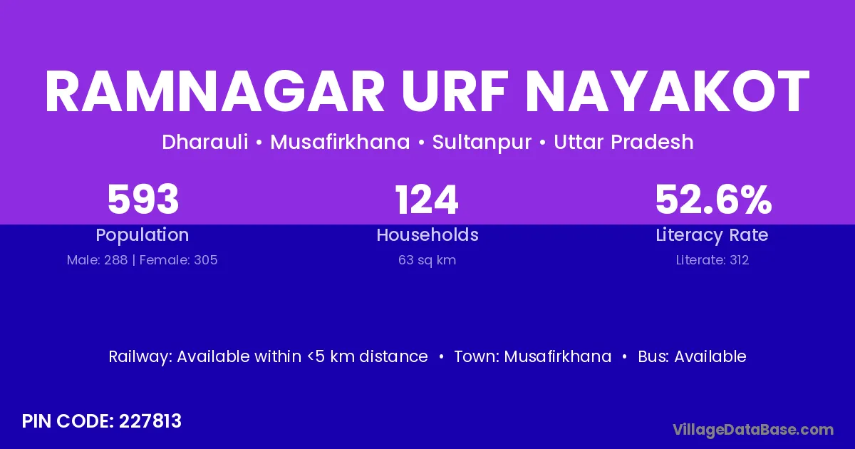 Ramnagar Urf Nayakot village has a total population of 593 people, of which 288 are males and 305 are females.