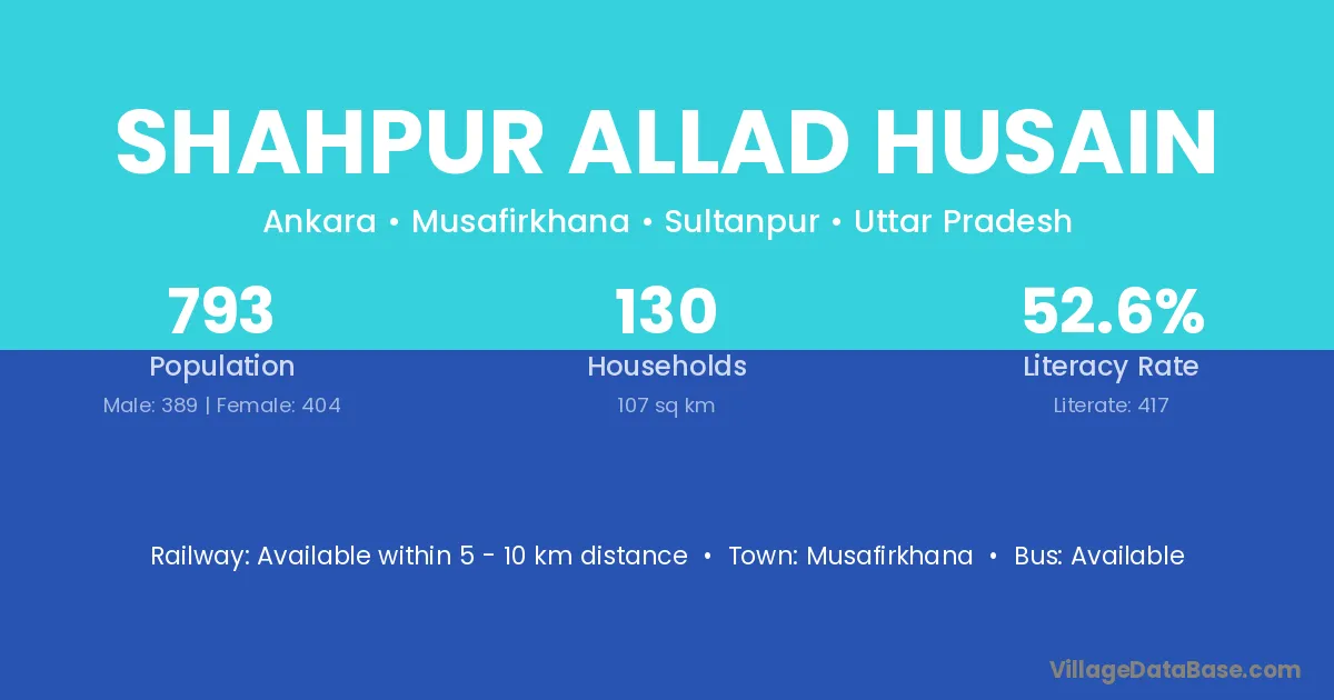 Shahpur Allad Husain village has a total population of 793 people, of which 389 are males and 404 are females.