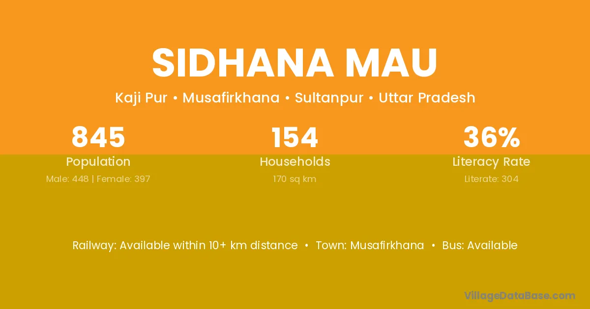 Sidhana Mau village has a total population of 845 people, of which 448 are males and 397 are females.