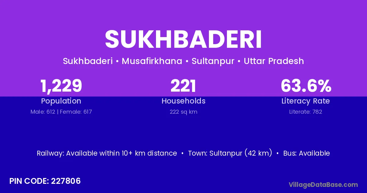 Sultanpur (42 km) is the nearest town to Sukhbaderi village for major economic activities and is located approximately 42 km away.
