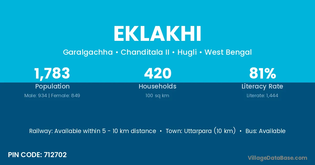 The literacy rate of Eklakhi village is 58.18%. Male literacy stands at 70.71% and female literacy at 47.45%.