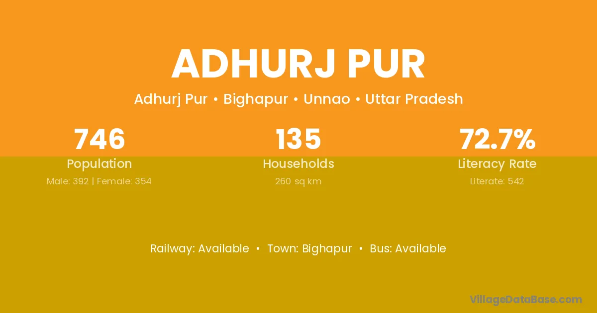 Adhurj Pur village has a total population of 746 people, of which 392 are males and 354 are females.