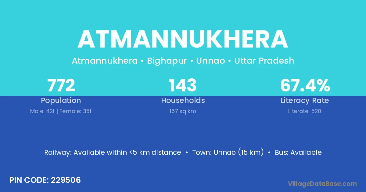 Unnao (15 km) is the nearest town to Atmannukhera village for major economic activities and is located approximately 15 km away.