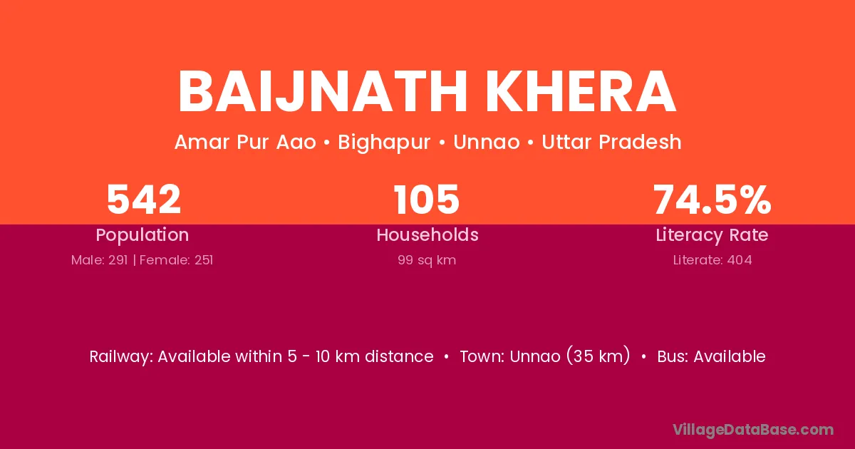 Unnao (35 km) is the nearest town to Baijnath Khera village for major economic activities and is located approximately 35 km away.