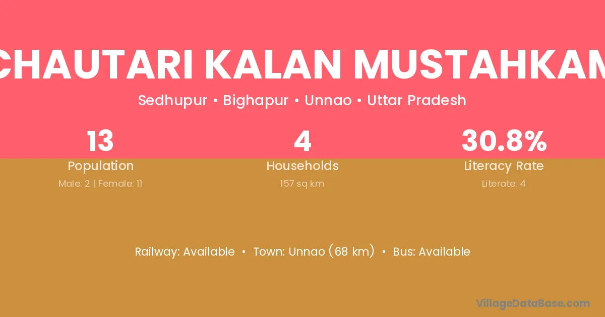 Unnao (68 km) is the nearest town to Chautari Kalan Mustahkam village for major economic activities and is located approximately 68 km away.