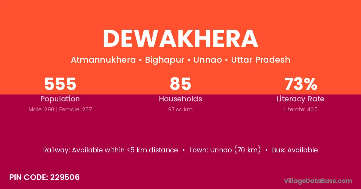 Unnao (70 km) is the nearest town to Dewakhera village for major economic activities and is located approximately 70 km away.