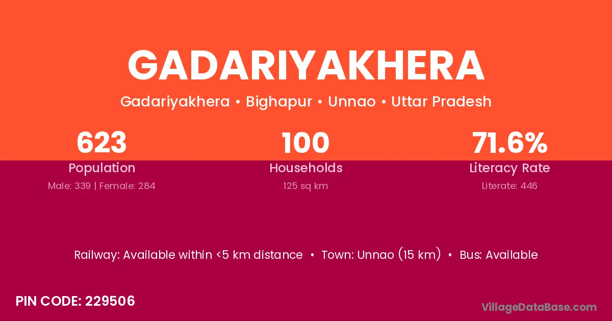 Unnao (15 km) is the nearest town to Gadariyakhera village for major economic activities and is located approximately 15 km away.