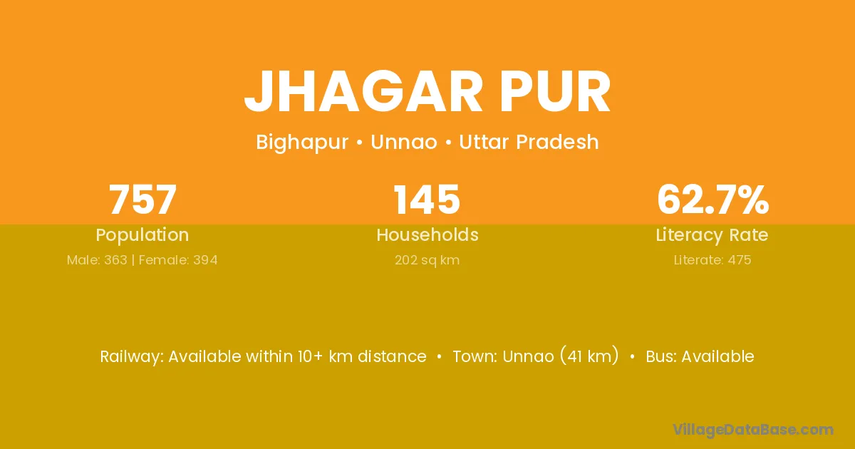 Unnao (41 km) is the nearest town to Jhagar Pur village for major economic activities and is located approximately 41 km away.