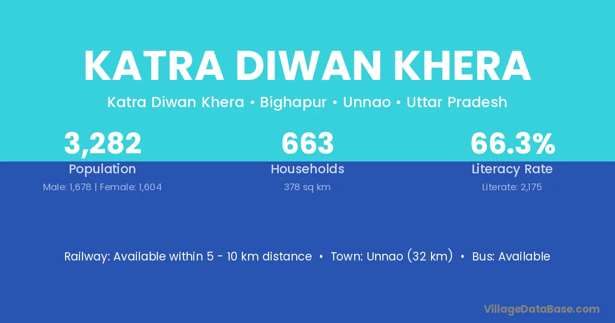Unnao (32 km) is the nearest town to Katra Diwan Khera village for major economic activities and is located approximately 32 km away.