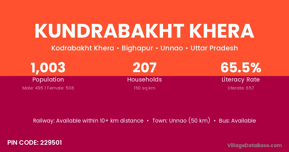 Unnao (50 km) is the nearest town to Kundrabakht Khera village for major economic activities and is located approximately 50 km away.