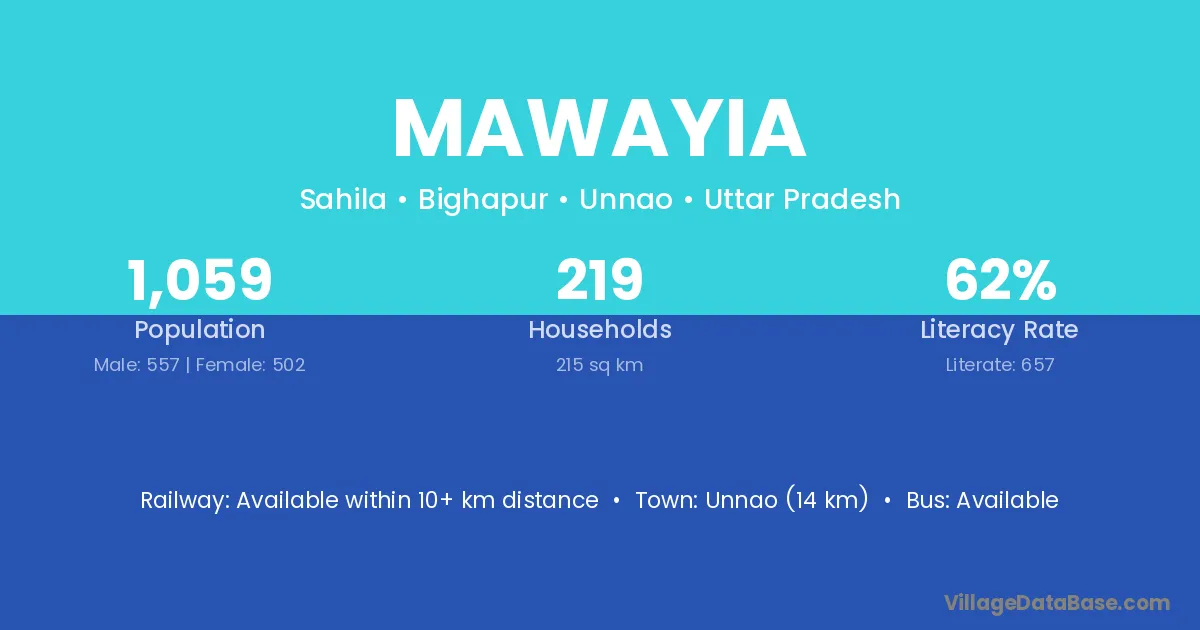 Unnao (14 km) is the nearest town to Mawayia village for major economic activities and is located approximately 14 km away.