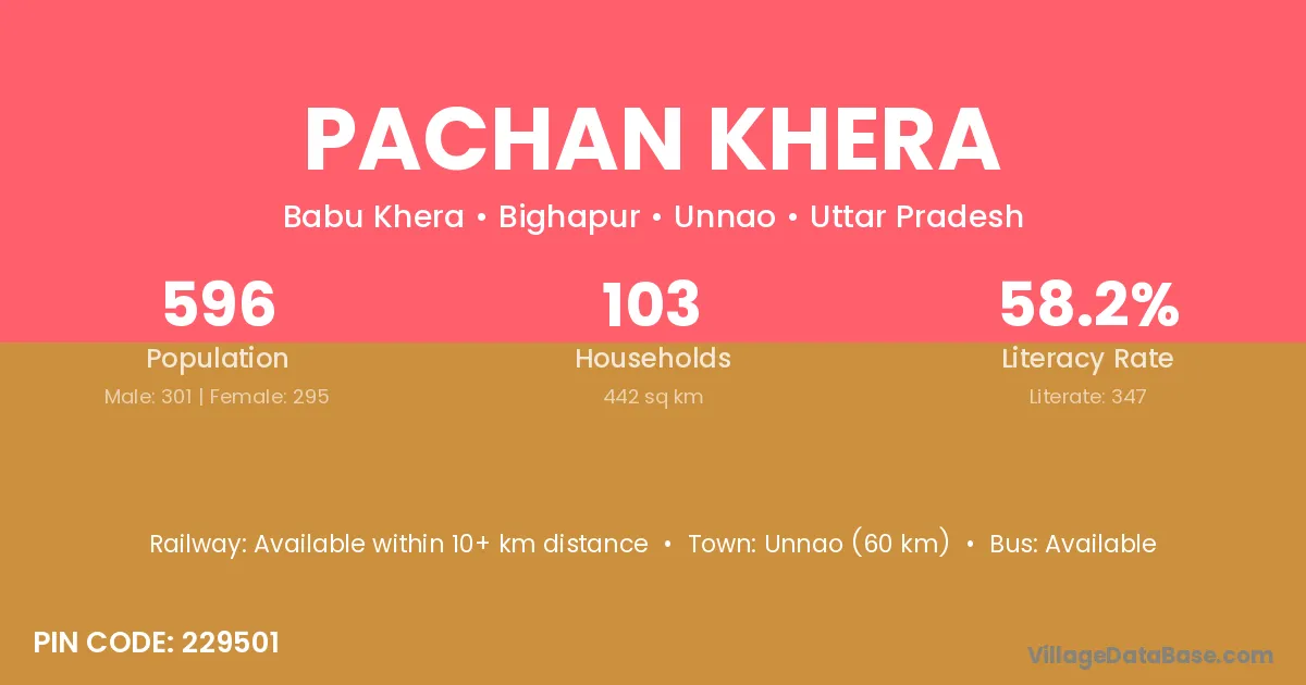 Unnao (60 km) is the nearest town to Pachan Khera village for major economic activities and is located approximately 60 km away.